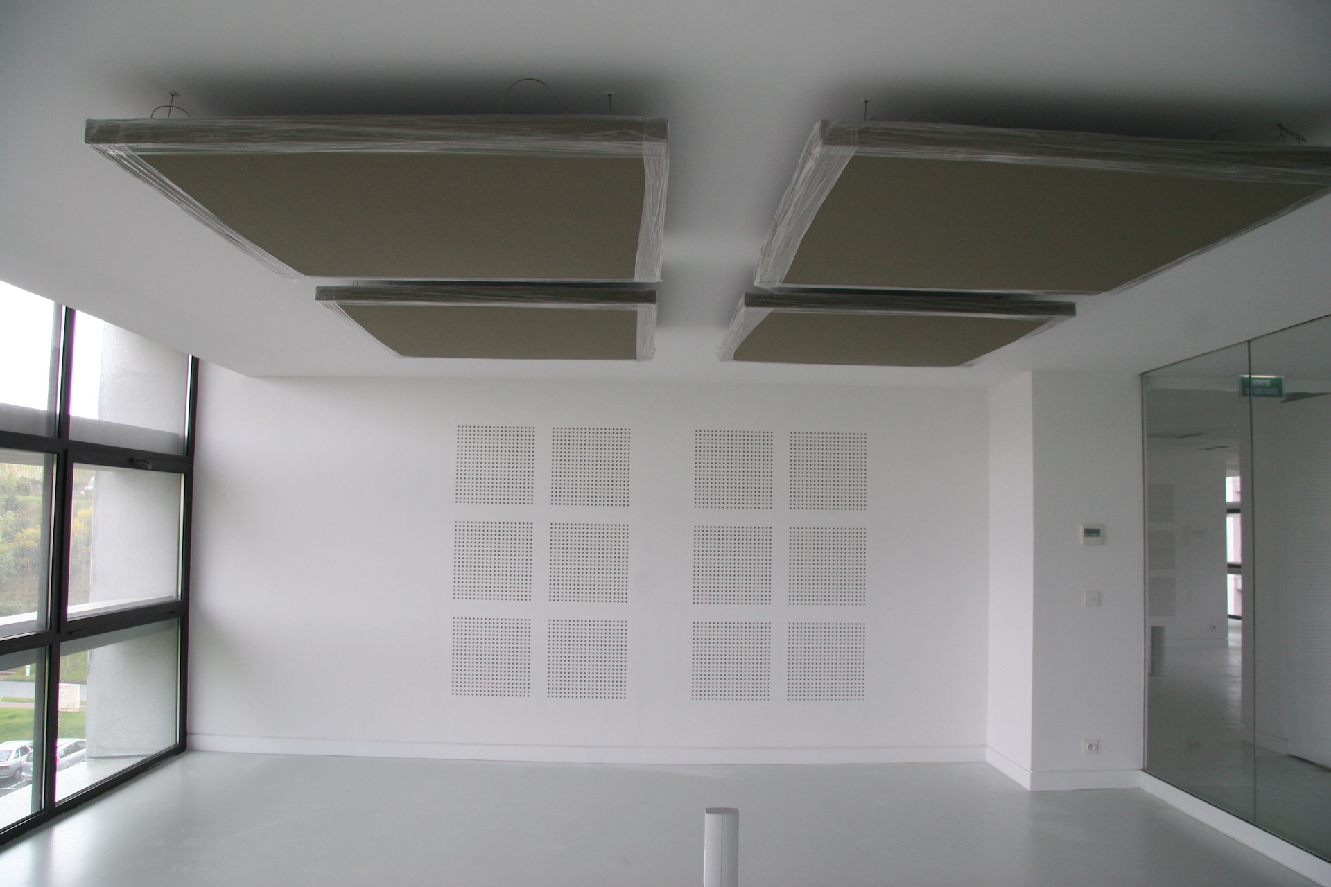 Plafonds tendus à froid, démontables, plafonds en bois, îlots acoustiques ou baffles acoustiques, optez pour la solution de votre choix.